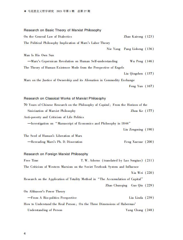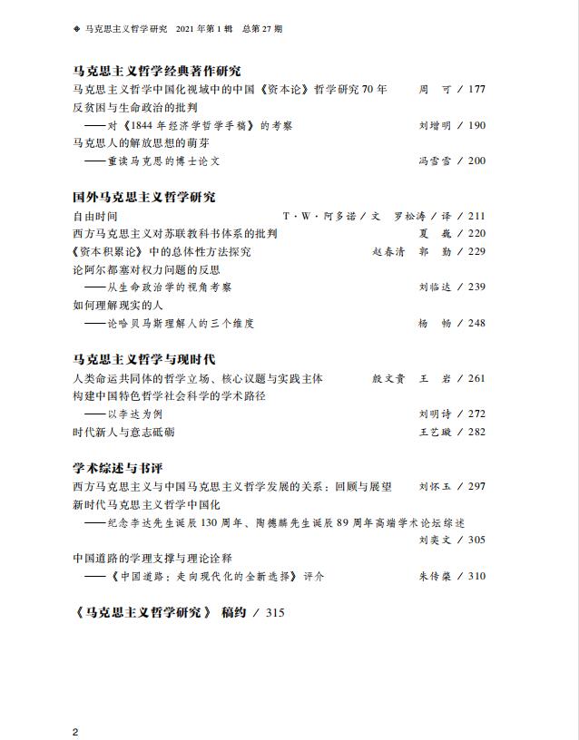 《马克思主义哲学研究》(2021年第1期)