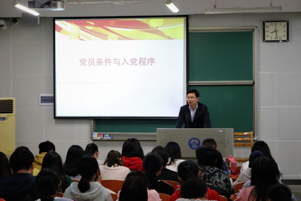经过短暂的课间休息,成人视频 党委副书记刘义胜老师为全体学员带来了第五讲——“党员条件与入党程序”。刘义胜老师首先介绍了《中国共产党发展党员工作细则》总体要求,说明了党员发展工作的规范性和严肃性。接着他向全体学员详细说明了入党程序和党员条件,并通过生动详实的案例和互动加深了学员们对入党时间、党龄等概念的认识,学员们纷纷表示对入党程序和对党员身份的认同都有了更深刻的理解。