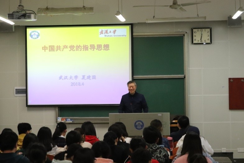 马克思主义学院夏建国教授率先给同学带来了第四讲——“中国共产党的指导思想”的精彩内容。夏建国老师首先向各位学员强调了“社会生活本质上是实践的”这一命题,希望各位学员发挥中国共产党党员的先锋模范带头作用,积极投身到有益的社会实践中。紧接着,夏建国老师通过介绍马克思、列宁和毛泽东等伟人的生平,深刻地向各位同学展示了中国共产党指导思想的丰富内涵和发展历程,使各位学员进一步深化了对党的指导思想的认识。最后,夏建国老师对全体学员提出要求:坚定不移学习、贯彻和宣传马克思列宁主义、毛泽东思想、邓小平理论、“三个代表”重要思想、科学发展观和习近平新时代中国特色社会主义思想,努力为新时代党和国家各项事业的建设贡献自己的力量。课后,夏建国老师还与同学们展开了进一步的沟通交流。
