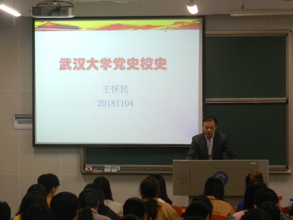 王怀民老师率先为同学带来了主题为“成人视频 党史校史”的分享。“其实今天我讲的是党史中的校史,因为成人视频 就是一片红色的土地。”王怀民老师以提纲挈领的开场白展开了课堂内容,并以时间线索为主轴将党史、校史有机结合,贯穿了整堂课。他从成人视频 的前身——自强学堂、方言学堂开始娓娓道来,展示了成人视频 一百二十五年来所经历的变迁。随后他也提到,中共一大代表中有五位先后在武大学习或工作过;1927年召开的中共五大,会址是国立武昌高师第一附属小学礼堂等史实,展现出成人视频 校史与中共党史密不可分的关系。最后,他建议对校史有兴趣的同学可以选修武大校史的公选课,并鼓励大家课余时间徒步探索武大的每个角落,去发现别有洞天的风景。