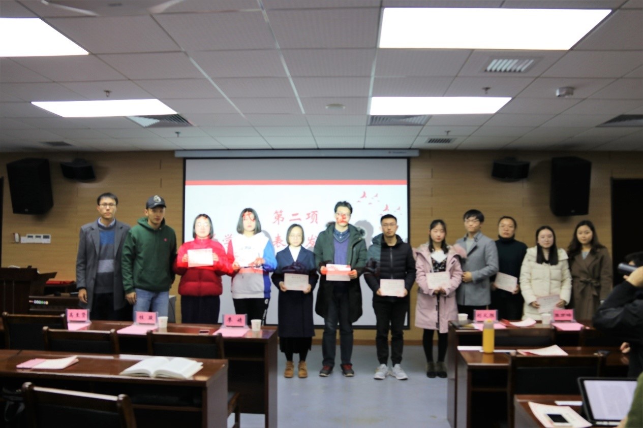 结业仪式在激昂的国歌声中正式拉开序幕。本次入党积极分子培训班报名78人,因故取消或放弃考试资格4人,最终结业74人。廖婧、桂骏、高至贤和张亦旸四位老师分别代表文、史、哲、艺四个学院为结业学员代表颁发了结业证书。