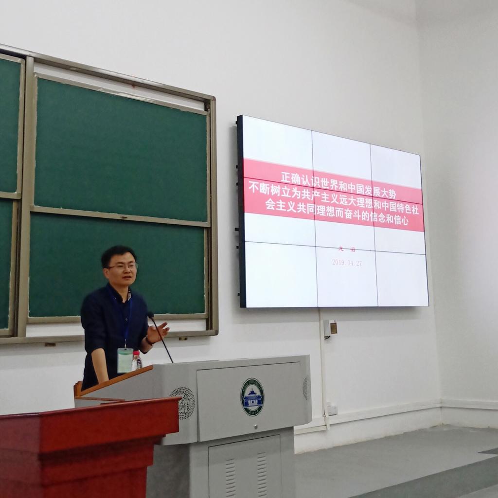 本网讯(通讯员:危雨阳) 4月27日上午,成人视频 2019年第2期党员发展对象培训班第三次课程在理学楼104教室开课,24名党员发展对象以及部分党员代表参加了本次培训。该培训同时也是学院党委精心设计的支部主题党日系列活动之一。学院党委组织员张辉老师主持了本次培训。