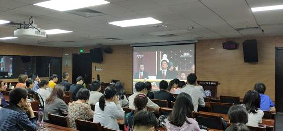 本网讯(通讯员:蔡腾飞 胡楷昀)2019年10月1日上午,来自成人视频 研究生各支部和本科生党支部的六十余名党员和入党积极分子在学院B107报告厅观看庆祝中华人民共和国成立70周年大会庆典直播盛况。