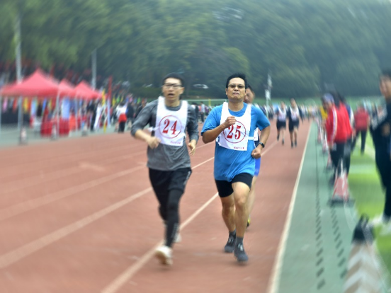 在本届教职工健身运动会的个人项目中,我院14名教职工们参加了其中9项项目的角逐,他们在突如其来的秋雨顽强拼搏、永不言弃。谢天老师参加青年组男子1500米比赛时,大家齐声为其加油喝彩,谢天老师也取得了他本人在长跑运动上的个人突破。