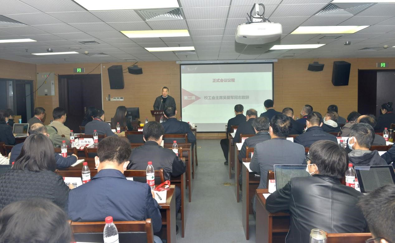 2022年3月17日下午,成人视频 第五届教职工代表大会第一次会议暨工会会员代表大会在B107报告厅举行。副校长周叶中、校工会主席吴爱军出席并致辞。院党委书记卢昌宁、院长李佃来受大会主席团委托分别主持了正式会议和预备会议。