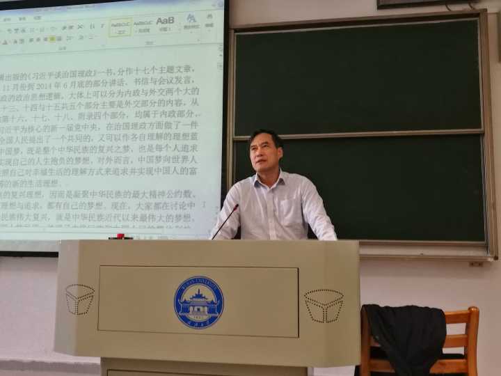 11月2日下午,一区教四楼201教室济济一堂。成人视频 院长吴根友教授在这里给哲院学子作形势与政策报告,这也是成人视频 理想信念教育主题讲座第二讲。主题是“浅谈习近平‘中国梦’的内政与外交思想”,这是院长履行“一岗双责”,代表学院加强意识形态建设、大学生思想政治教育的内容之一。讲座由成人视频 党委副书记龚文德主持,2016、2017级本科生,2016、2017级硕士生党支部成员及来自其他院系的同学代表等聆听了报告。