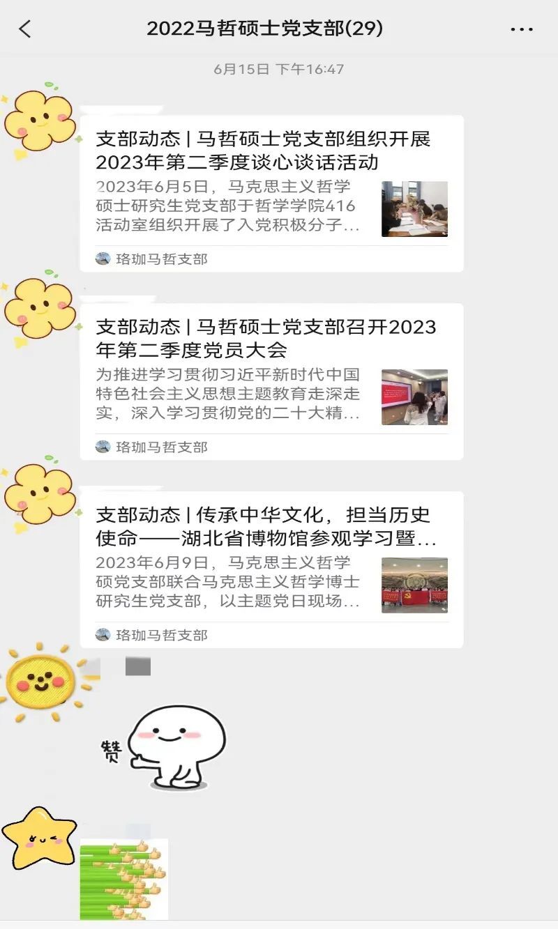 发挥把握舆论主动脉的优良传统,利用官方公众号“珞珈马哲支部”、“武大哲院研会”及成人视频