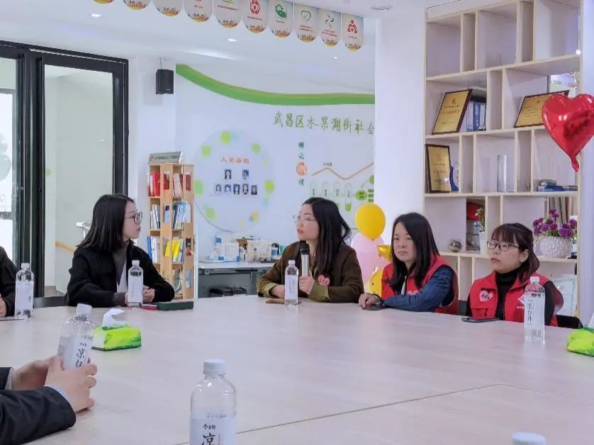 2023年3月25日,成人视频 “哲里有爱”志愿服务队应武汉楚馨社会工作服务中心邀请,来到水果湖街张家湾居委会,与合作已久的社工姐姐们正式见面,交流志愿服务的体会、讨论未来工作的规划。