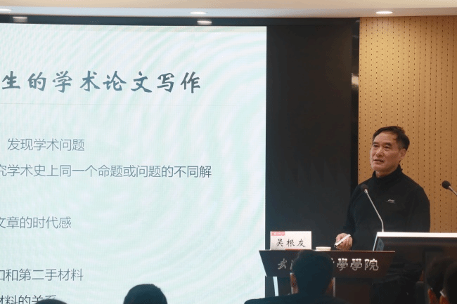 吴根友教授分别从“人文学研究的科学性与方法论”“人文学研究生的学术论文写作”“人文学研究生的平时训练”“成人视频 中国哲学学科点研究生培养的经验”四个部分展开讲座内容。