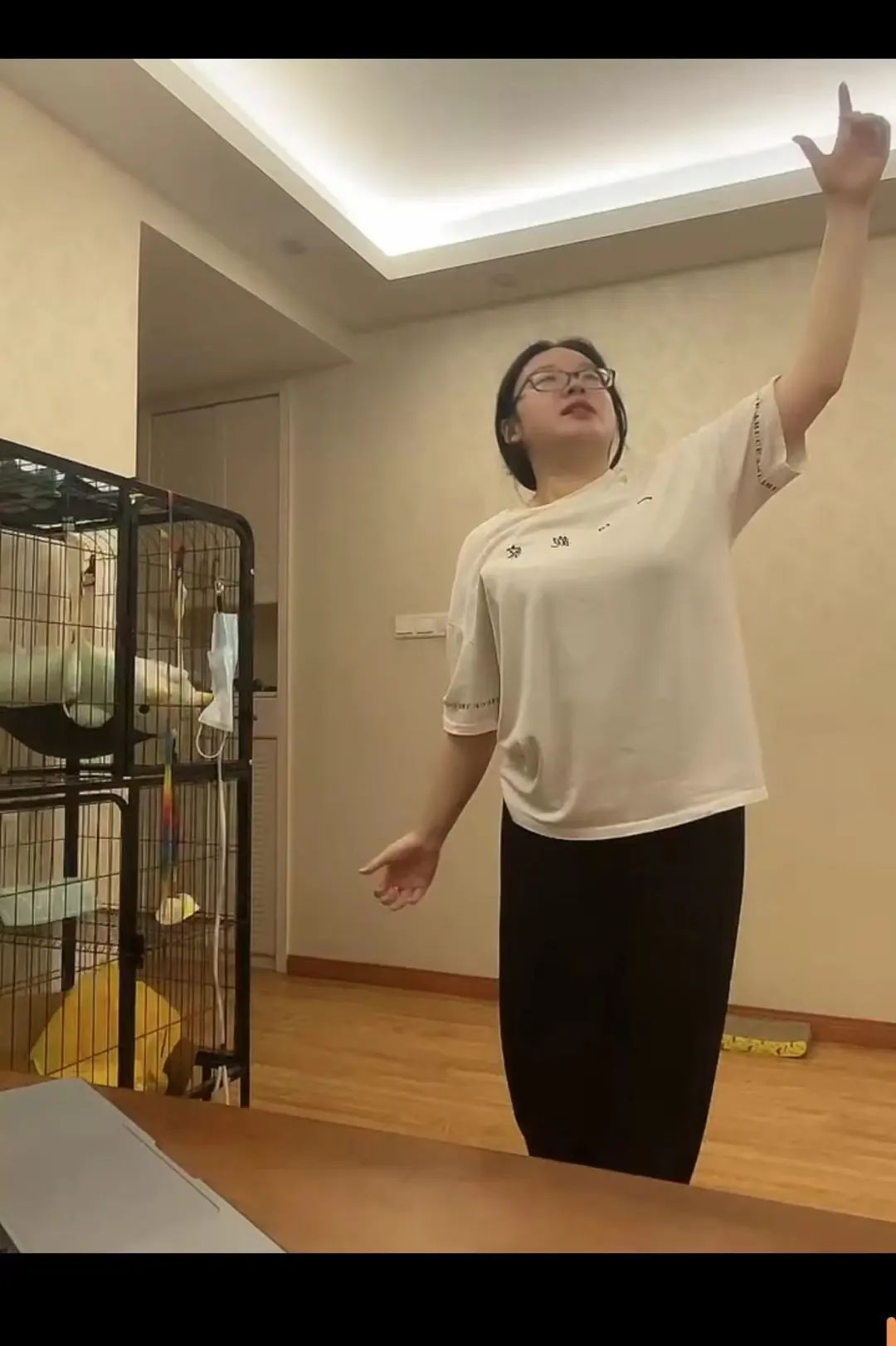 (排练结束后,教练露出了欣慰的笑容)