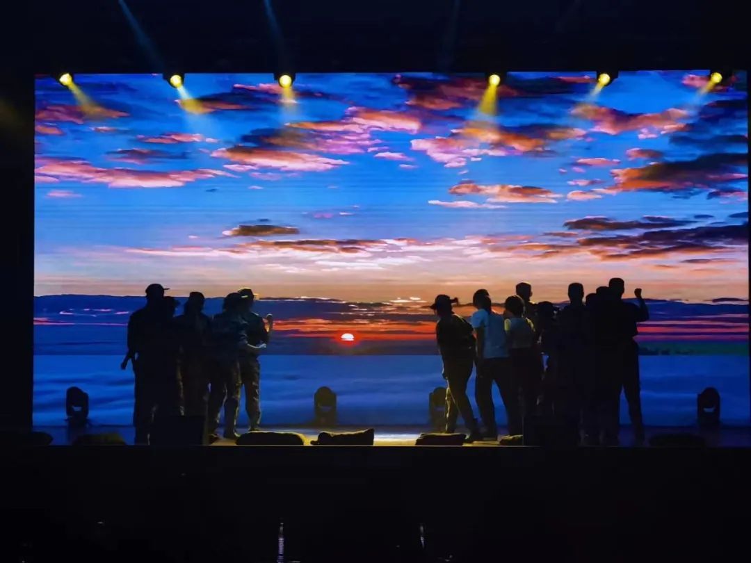 舞蹈进入慢板部分,朦胧的霞光晕染 整片天空,那是信仰,是希望,是胜利的曙光。连夜奋战、疲惫不堪的军民们 用舒展的动作刻画出坚定不移的信念和胜利的喜悦。人民子弟兵跟随群众的目光和脚步,欣慰于河清海晏的太平景象,感慨胜利的来之不易。最后,救援官兵簇拥着人民群众,如群雕般定格在舞台中央。