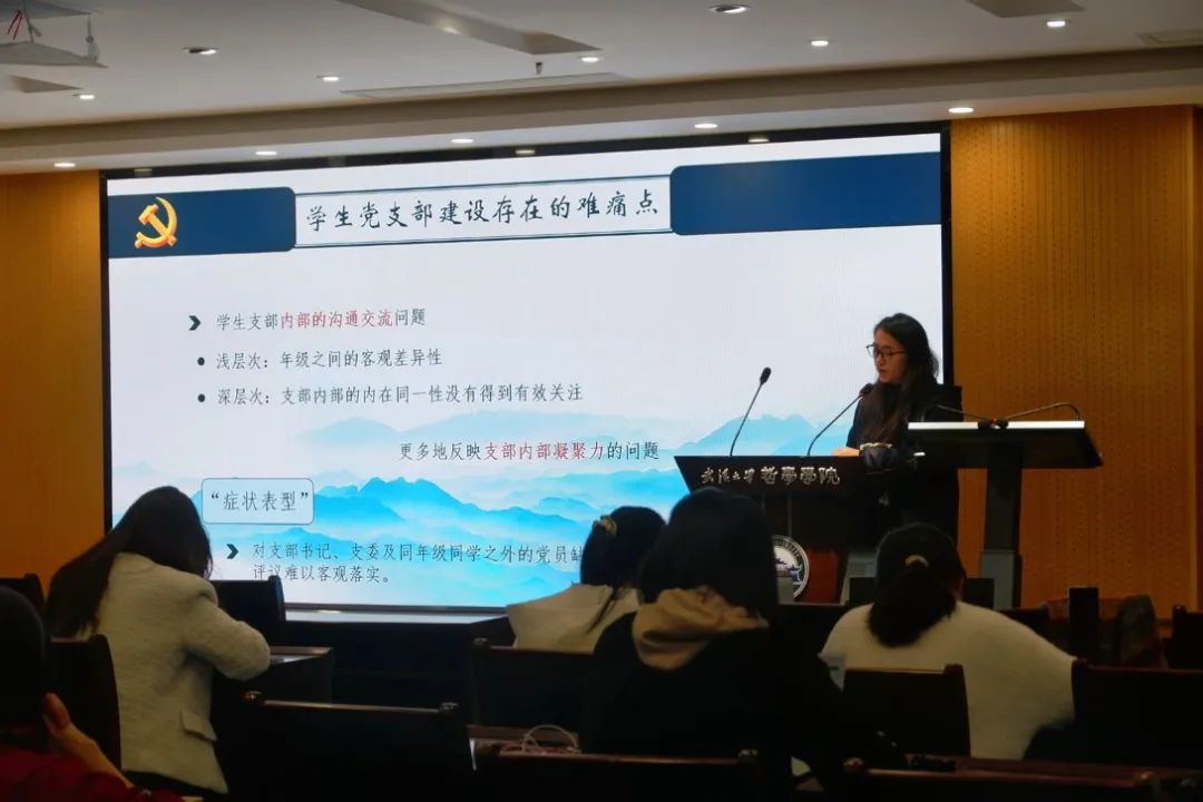 成人视频 优秀研究生党支部代表马克思主义哲学硕士研究生党支部以及国学研究生党支部进行了经验交流。国学研究生党支部的焦宁同志以成人视频 2023年研究生党支部风采大赛为例,进行了国学研究生党支部建设经验总结分享。马克思主义哲学硕士研究生党支部的侬俊宇同志从支部发展的实践出发,突出介绍反思了学生党支部建设存在的难痛点,为未来预备党员同志参与各支部建设发展提供实践经验。
