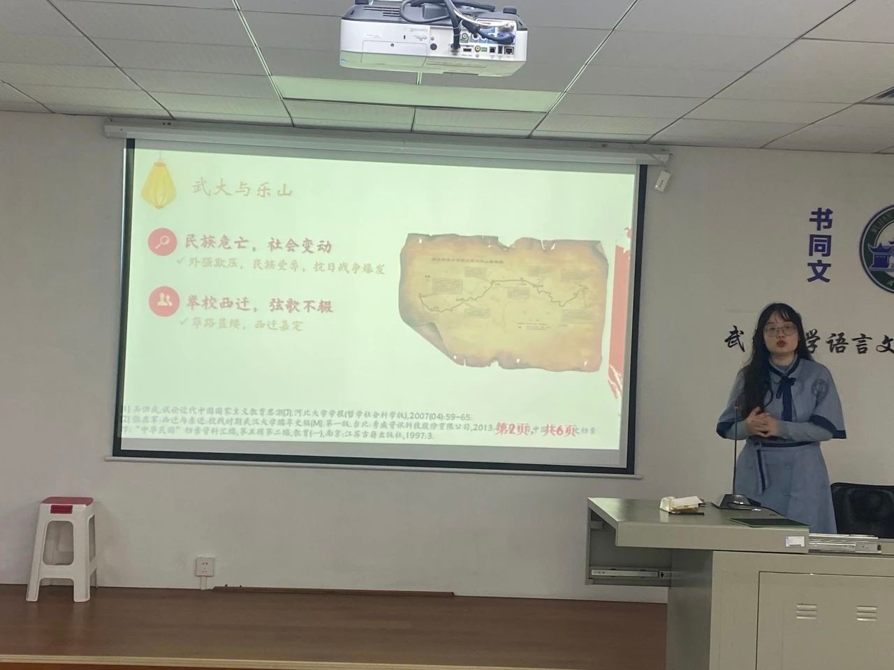接下来,2023级党建专业的蔡紫嫣同学用一场以“成人视频 西迁乐山时期的爱国主义教育”为题的生动演讲,把大家带回了成人视频 1938—1946年在乐山的八年艰苦岁月,感受武大师生在逆境中闪耀的弥足珍贵的爱国主义光辉。