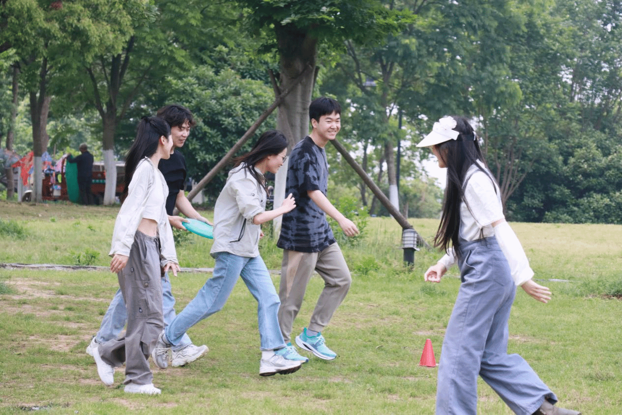 漆扇制作活动结束后,院研会文体部的同学带领大家开展了飞盘活动。希望借此项活动让同学们在比赛中感受团队协作和相互鼓励与支持的重要性。文体部的同学首先向大家讲解了扔飞盘和接飞盘的技巧,详细介绍了如何正确握住飞盘,如何运用力量和角度将飞盘扔出,以及如何灵活地接住飞盘。此外他们还提醒同学们在比赛中要注意互相配合和传递。接下来,赵宇同学为大家讲解了飞盘的比赛的规则。随着规则的讲解结束,同学们迫不及待地开始了飞盘比赛。同学们在阳光下奔跑、追逐、传递飞盘,尽情挥洒汗水,展示了出色的运动能力和团队协作精神。他们互相鼓励、互相支持,为了共同的目标而努力奋斗。