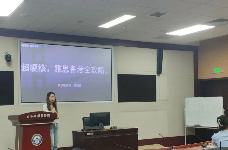 讲座由新东方国际教育集团的资深讲师汤晓青老师执掌讲坛。汤老师首先对雅思(IELTS)考试进行了全面介绍,包括考试的各部分构成及评分标准,使得初次接触雅思的同学们能够有一个整体的认识。