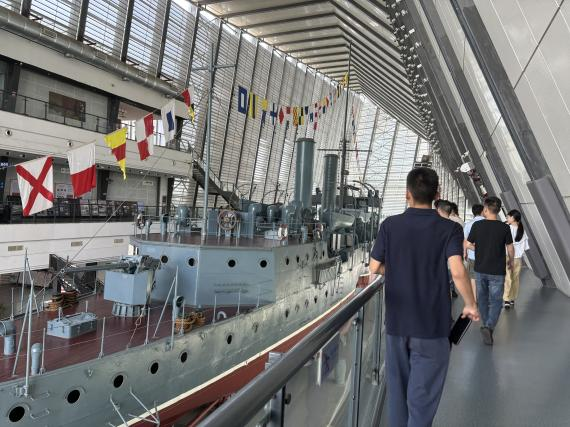 随后,社会实践队员来到高龙博物馆展开调研,了解了汉阳高龙的起源传说、历史沿革、高龙轧制和表演实景过程,同时也借助馆内的弧幕带水投影和3D科技,模拟参与了高龙的制作,获得了直观的舞龙游戏体验。在与博物馆工作人员的交流过程中,实践团队了解到近些年江欣苑的非遗传承工作做得有声有色,周边居民参与高龙文化保护的积极性得到了极大的提高,高龙这一湖北特有的龙灯艺术也逐渐变得火热了起来。