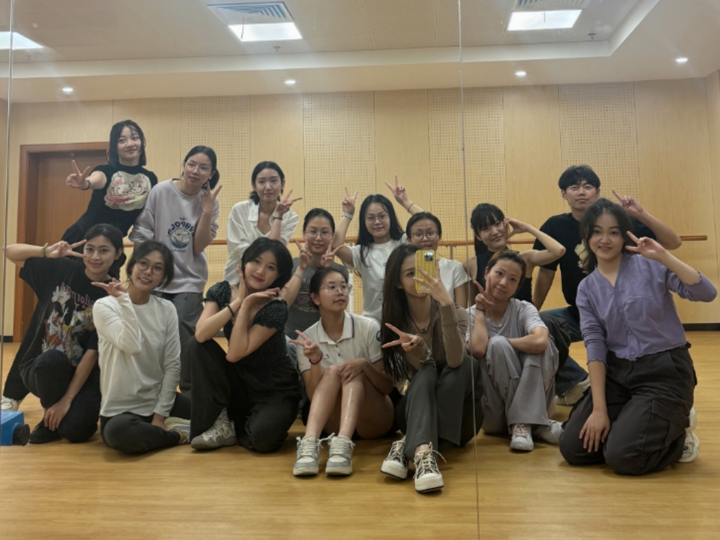 回顾过去几周的排练情况,两院联队首先要面临不同课程与时间安排的问题,十五位来自不同专业不同年级的同学主动为排练牺牲了周末的休息时间,从组队开始每周五、周六和周天都在老师的指导下认真学习,努力提高自己动作的完成度。《待到春和景明时》是一个传统的古典舞,它对表演者的柔韧性、表现力和节奏感都有一定的要求。面对这样一个有难度的作品,大家齐心协力,相互帮助、相互鼓励,力求认真练好每一个动作,在大家的共同努力下,每一处伸手、每一处抬眸、每一次回首都在练习中变得越来越协调默契。