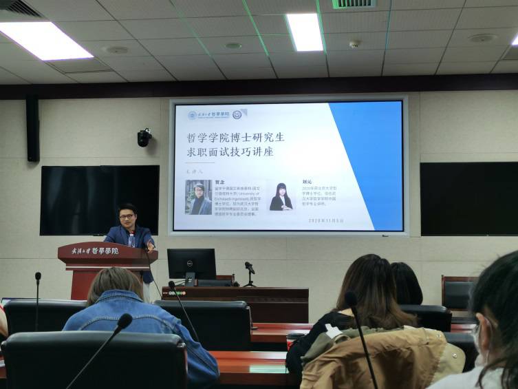 2020年10月5日下午,由成人视频 主办、成人视频 研究生会承办的“成人视频 博士研究生求职面试技巧讲座”于振华楼B214报告厅顺利举行,本次讲座旨在帮助博士研究生解答求职困惑、提升面试技巧。为此,讲座特邀成人视频 特聘副研究员贺念老师、成人视频 中国哲学专业讲师刘沁老师,作为主讲嘉宾为大家分享经验。成人视频 学生工作办公室主任张辉老师出席了本次讲座。