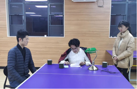 在精彩的舞台表演背后,凝聚了排演团队的付出与汗水。从剧本创作到演员招募,从组织排练到圆满结束,都离不开《决心》剧组中每一位研究生同学的认真努力与学院提供的默默支持。在剧组大部分同学没有表演经验的情况下,大家只能在日常的学习之外,借助晚上的空余时间来背记台词、练习站位、融入角色,无数遍的排练方才铸就台上十余分钟的精彩出演。