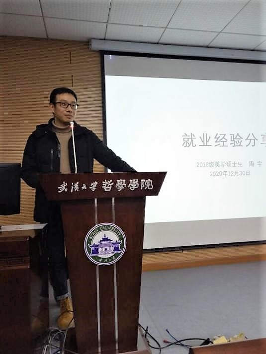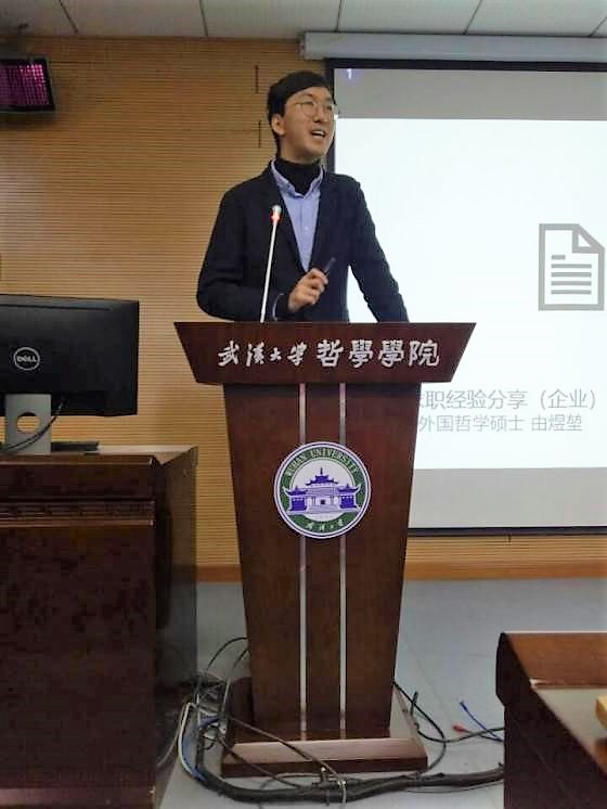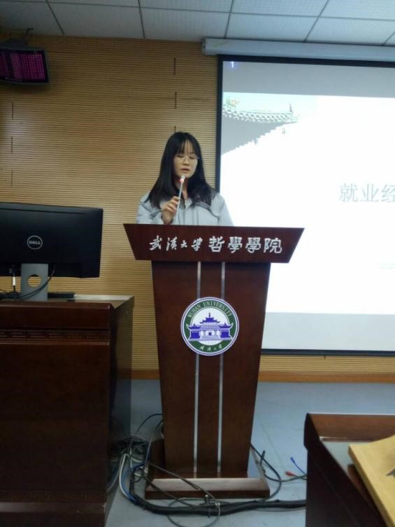 第一位主讲人是2018级外国哲学硕士研究生由煜堃同学。他从简历制作与投递以及无领导小组面试为切入点分享了自己的求职经验。他认为,企业招聘最重要的是能力模型和岗位模型的匹配度,因此在简历制作时不要做流水账式的信息罗列,而是要有用户思维,善用能力模型。如果不清楚自身具备的能力,可通过多与他人交流沟通来发掘。然后他以自己的简历为例具体说明了简历制作时应注意哪些细节,如格式应以简约为美;应注重逻辑清晰、内容充实;应重视结构化个人信息方面的填写;简历制作时应采取倒叙模式;应适当加入自己的反思;可采取“能力+事实”形式等等。同时,由煜堃同学建议大家在投递简历时不要随心所欲,要根据自己的能力模型做出选择。在无领导小组面试部分,由煜堃同学认为群面考察的是团队合作能力,面试过程之中要积极扮演推动者的角色。分享的最后,由煜堃同学表示,求职是个不断遭受打击的过程,可能经过几十次应聘才能获得一个offer,但他也鼓励大家不要放弃,要坚定信心,善于“运用资源”,耐心“等待缘分”,相信“事在人为”。