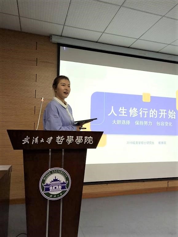 第三位主讲人2018级美学专业硕士研究生崔雅丽同学首先介绍了在我们求职过程应遵循的重要法则——STAR法则,STAR指Situation、Target、Action、Result,即背景、行动、目标、收获。她利用STAR法则,采取“事理结合”的方式,通过自己丰富的实习故事来向大家分享自己在应聘和工作中的经验。她把自己的实习经历看作是不断明确求职目标,积累工作经验的“升级打怪”的过程。同时,崔雅丽同学建议大家要有明确的职业规划,选择工作时要了解自己、了解工作,要“尽早开始、尽早确定、尽早努力”。她强调工作中要养成规划、记录、复盘的工作习惯,要有守时、守约、互赢合作的职业精神。最后,崔雅丽同学把求职工作看作是“人生修行的开始”,估计大家要“大胆选择,保持努力,包容变化”。
