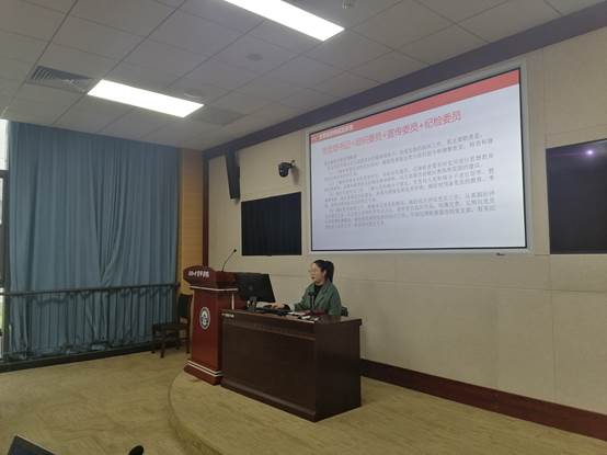 刘秀慧老师从支委会构成及职责、常规工作、党建经费使用、发展党员工作的流程规范、事务咨询、近期工作等六个部分逐一进行讲解,带领大家详细梳理了支部工作要点和注意事项。刘老师分别对支部书记、组织委员、宣传委员和纪检委员的职责,帮助大家明确自己的职责,将支部常规工作按照每月、每季度、每年进行梳理,并详细讲解了如何正确开展支部主题党日活动、“三会一课”、组织生活会、谈心谈话等内容,帮助大家理清每一阶段的工作任务。并且,刘老师建议各支部开展内容丰富、形式多样的“三会一课”,并对党建经费的使用进行了说明。