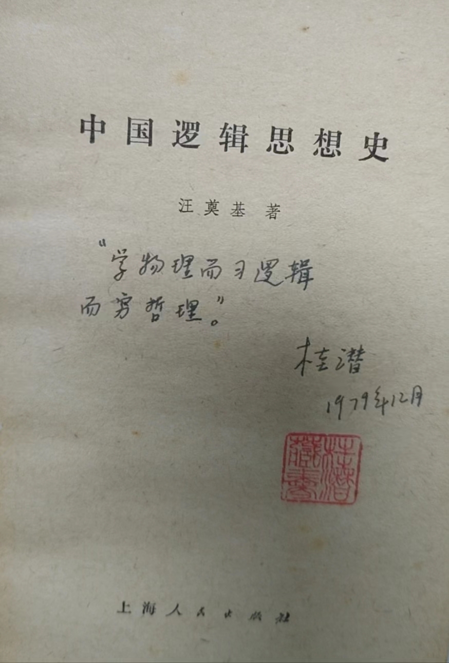 进入桂老师的书房,在整整占据三面墙的书架中整齐摆放着数量、种类繁多的藏书。冯娟老师和志愿者们感叹于桂老师广博全面的涉猎研究、敬佩桂老师严谨扎实的治学态度。桂老师的藏书分类归置,其中不仅有《辨证理性批判》、《科学革命的结构》等外国哲学经典;《物理实验》、《生物化学》等科学书籍;《经济学方法论》、《西方经济学》等经济学讲义;还有《韩非子》、《四书章句集注》等中国哲学名篇;此外,桂老师的藏书中还包括如《莎士比亚妙语集》、《歌德妙语集》等文学摘引和不少学习各种外语的工具书籍。翻开藏书,又能从工整清晰的笔记中管中窥豹,了解到桂老师治学的认真踏实;而在《中国逻辑思想史》的扉页上,桂老师的手书“学物理而习逻辑而穷哲理。”又让人感受到他在阅读时的心绪意趣。他的学生万小龙说,桂师对学问有纯粹的追求,求真务实、涉猎广博,几乎是哲学界的百科全书式的人物,学者风范堪为世人景仰。