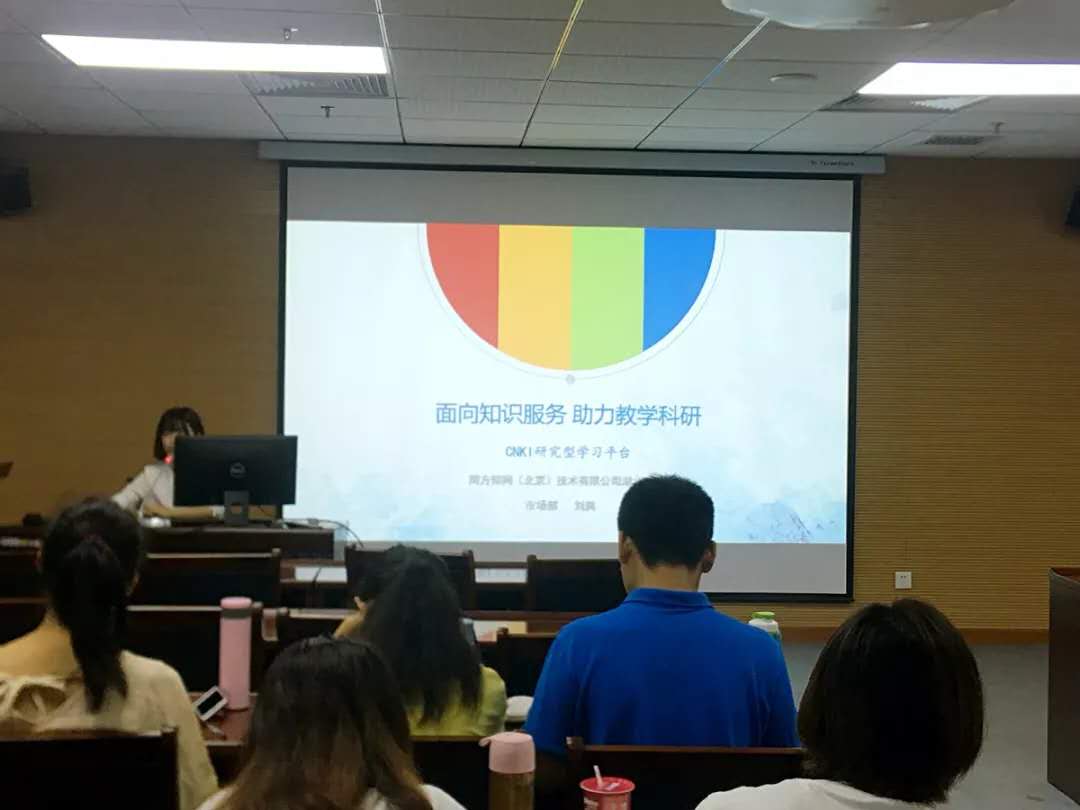 主讲人刘爽老师对中国知网的研究型学习平台进行了简要的介绍,包括:研究型学习平台的理念,其核心功能、文献获取、在线研读、学术社交、知识管理、投稿等方面的使用技巧以及XML数据、PDF数据平台等方面的情况。最后,我院资料室冯老师向大家介绍了目前学院资料室的基本情况。