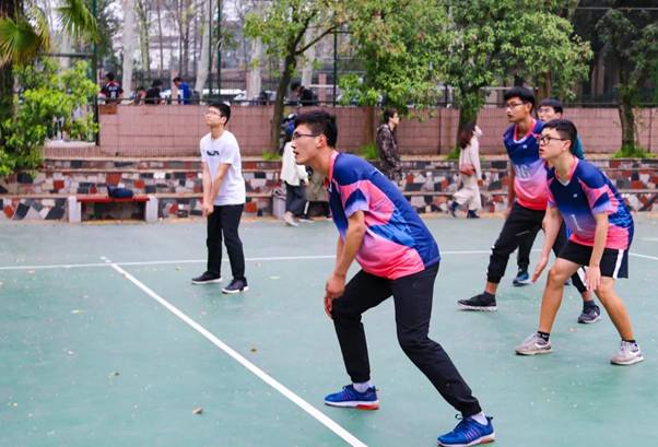 虽早就听闻国教的传奇,但哲院男排本着超越自己,向强者学习的心态认真对待着比赛。比赛之初双方比分咬得很紧,以3:3,5:4,6:7不断更新,相较于前几场的比赛,明显感觉我院男排配合更加默契。尽管场地中狂风呼啸,梧桐絮飘飞,但双方队员都努力不被影响,专心于比赛。但是对方5号队员连发多颗球都出乎我院队员的预判,最终比分又被拉开,我院以11:25输给国教。
