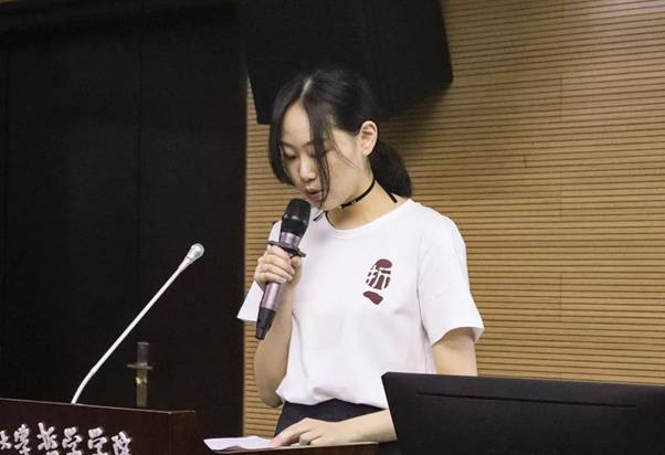学习实践部部长孙知常作为学生会部门部分述职的压轴,以轻松的讲述方式,具体化数字呈现学习实践部一年来于文字处理方面繁重的任务量,让大家直观地了解了学实部。
