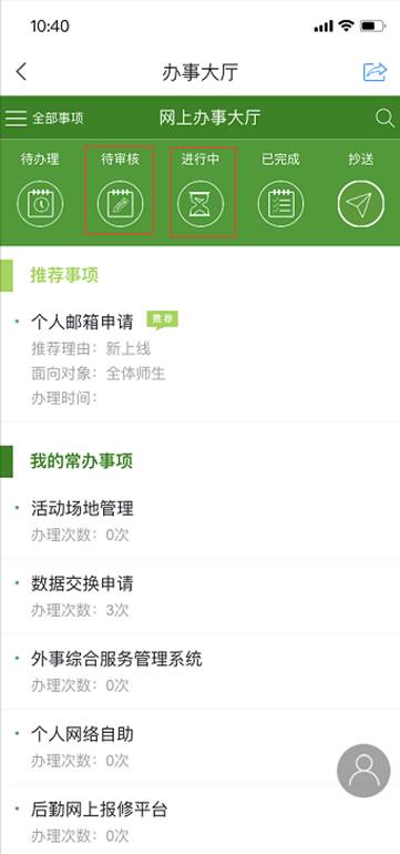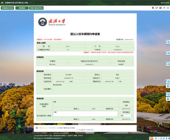 交通协管员和保卫部负责人可进入“待审核“栏查看需要自己审核的订单。