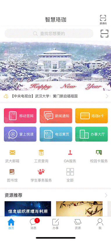1. 登录智慧珞珈APP