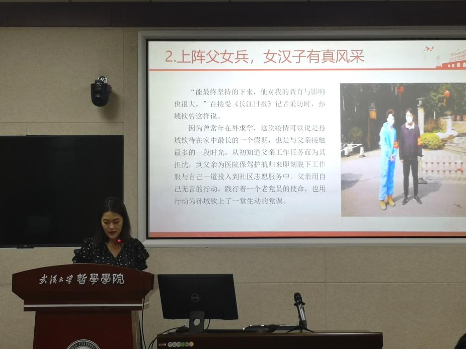 活动最后,支部书记徐瑞宏带领大家学习了“新时代、新担当、新作为”微党课,以支部党员孙域钦在抗击新冠肺炎疫情中的先进事迹为例,讲述新时代的党员应当在党和人民需要的时候义无反顾地挺身而出、冲锋在前、无负组织重托、无负人民期待的担当作为。与会党员纷纷表示,在当下新冠肺炎疫情防控的关键时期应体现共产党员急难险阻冲在前的基本素养,齐心协力,交出令党和人民满意的答卷。