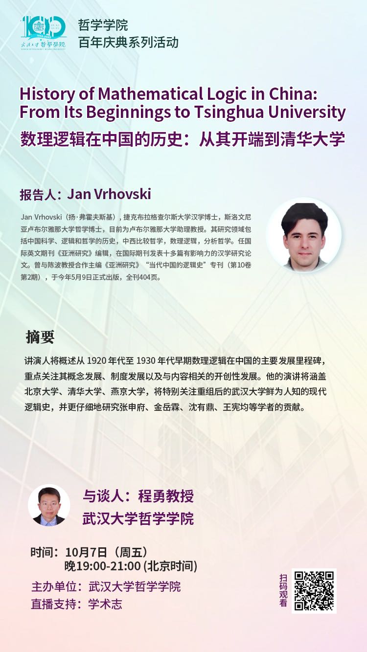 【10月7日】数理逻辑在中国的历史:从其开端到清华大学