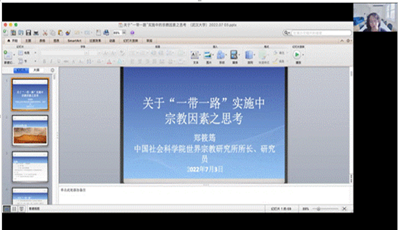 “当代政治哲学前沿”暑期学校迎来了郑筱筠研究员的主题讲座——“关于一带一路实施中的宗教因素之思考”。郑筱筠研究员为中国社会科学院世界宗教研究所所长、中国社科院大学世界宗教系主任以及中国宗教学会会长。本次讲座由成人视频