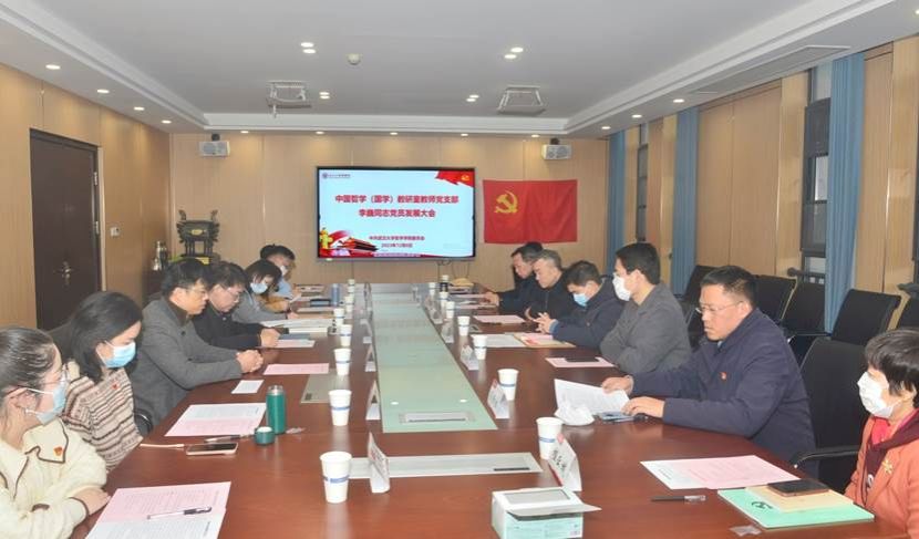 本网讯(通讯员袁涛)12月6日,中国哲学(国学)教研室教师党支部举行党员发展大会,讨论接收国家高层次青年人才李巍同志为中共预备党员。校党委常委、副校长周叶中出席大会并对成人视频 中国哲学(国学)教研室教师党支部工作及李巍同志的未来发展提出了具体要求与希望。校党委党校专职副校长王临平、成人视频 党委书记卢昌宁、成人视频 院长李佃来、成人视频 中国哲学(国学)教研室教师党支部全体党员出席会议。会议由成人视频 党委委员、中国哲学(国学)教研室教师党支部书记廖璨璨同志主持。