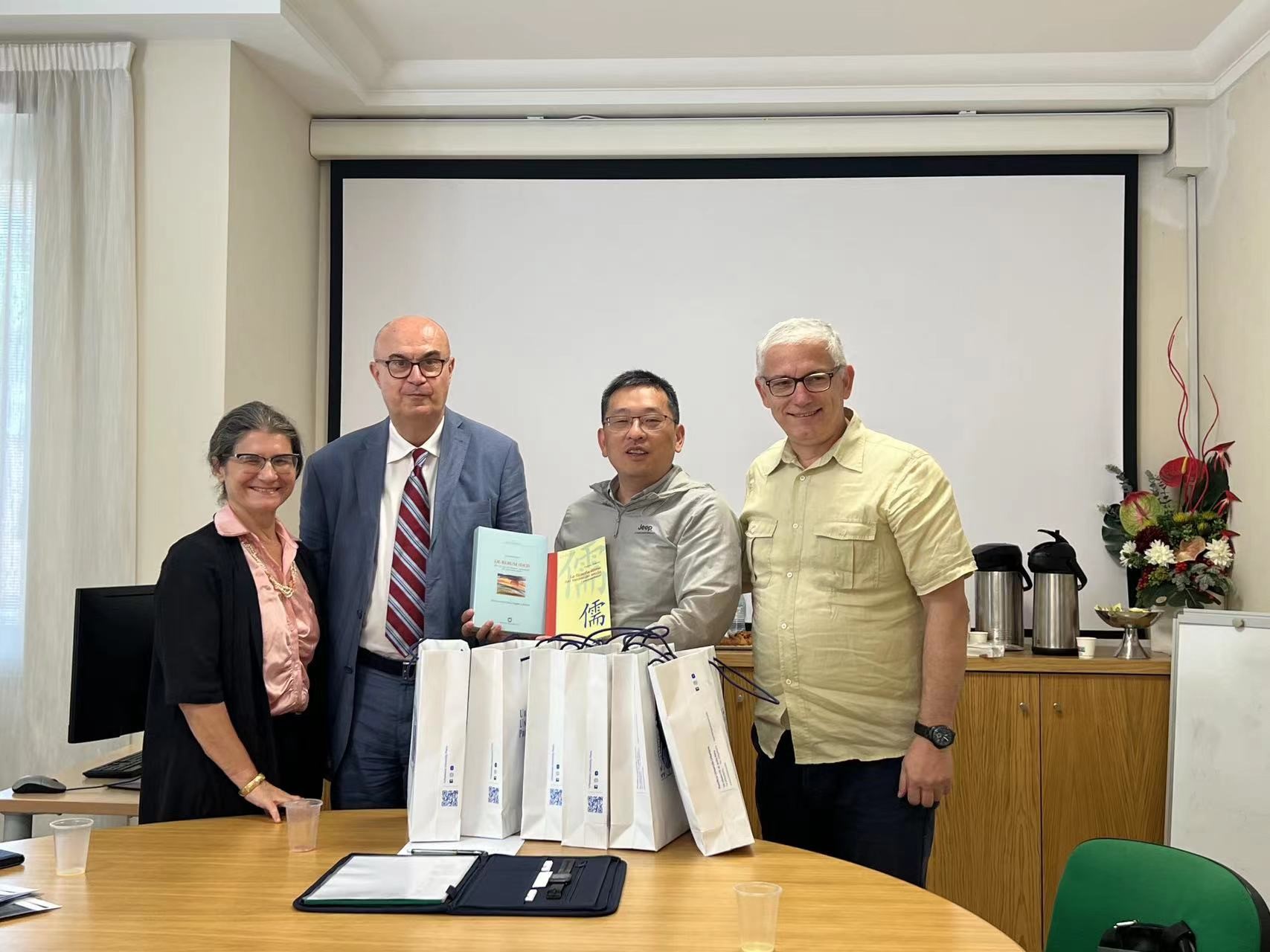 当地时间8月5日上午,我院师生代表赴罗马第一大学东方研究中心开展学术访问及交流活动。罗马大学Riccardo Pozzo教授介绍了该中心相关情况,并带领我院师生进行了参观。在该中心图书馆中,学院师生了解了该校丰富的图书馆藏情况,参观了图书馆著名汉学家白佐良先生捐赠的有关中华哲学、宗教和文化相关的大量藏书。在交流环节,该中心主要研究人员介绍了其课题组在利用人工智能以及大数据等相关技术对哲学翻译、汉语哲学等方面进行的研究,并就相关话题与我院师生进行了积极探讨。李佃来院长对其师生在跨文化交流和弘扬中华文化方面做出的努力表示鼓励和支持,欢迎罗马大学的学生到武大成人视频 进行研究生课程的学习。