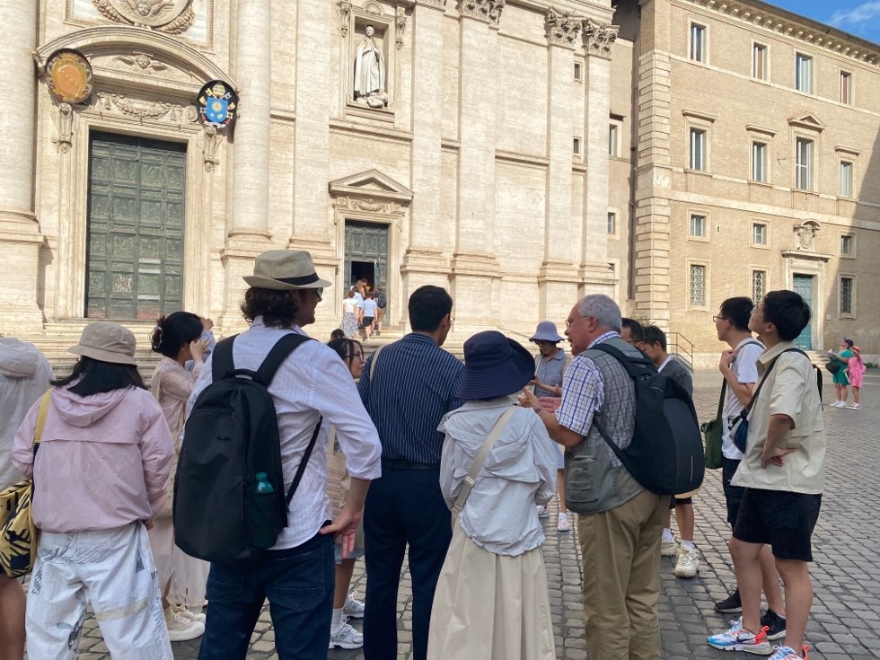 当地时间8月5日下午,我院师生拜访了位于罗马市中心的格里高利大学,受到该校哲学系João J. Vila-Chã教授和Marcus Boeira研究员的热情接待。座谈会上,对方学者介绍了该校的办学历史和学科发展情况。我院师生依次介绍了自己的研究领域以及成人视频 哲学学科的相关情况。会议结束后,Vila-Chã教授带领我院师生一行参观了位于罗马市中心的多处历史古迹,并为大家详细介绍了各处古迹的历史背景和当前的使用情况。在参观过程中,我院师生了解了罗马的历史沿革,欣赏了壮观的巴洛克式建筑及其背后的哲学思想。随后,Vila-Chã教授等学者邀请师生登上位于格列高利大学教学楼上的楼顶观景平台,一同欣赏罗马城的黄昏美景并设晚宴款待。最后,李佃来院长对该校的热情接待表示了感谢,访问活动圆满结束。