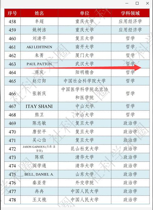 我院Paul Patton教授入选2021年度“中国高被引学者”(Highly Cited Chinese Researchers)榜单