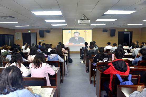 本网讯(通讯员:刘秀慧)4月30日上午10时30分,纪念五四运动100周年大会在人民大会堂隆重举行。中共中央总书记、国家主席、中央军委主席习近平出席大会并发表了重要讲话。成人视频 组织师生代表在学院B107报告厅集中收看大会直播盛况。