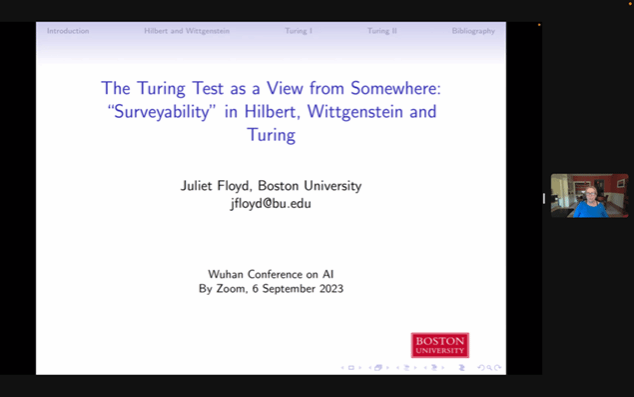 本网讯(通讯员李懿迪)9月6日晚,应成人视频 陈波教授邀请,美国波士顿大学哲学系讲座教授、波士顿大学人文中心主任、国际科学哲学院(AIPS)通讯院士朱丽叶·弗洛依德(Juliet Floyd)做了题为“维特根斯坦、图灵和可检测性(Wittgenstein, Turing, and Surveyability)的线上讲座,它属于新设立的“成人视频 科学技术哲学论坛”第一讲。讲座由陈波主持,北京大学哲学系助理教授王小塞(Sebastian Sunday Greve)评议。来自国内外的400余名听众参与本次线上讲座。