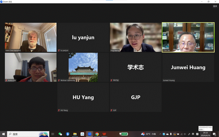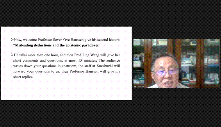 本网讯(通讯员鲁彦君) 4月16日晚,应成人视频 陈波教授邀请,瑞典斯德哥尔摩皇家理工学院哲学教授、A&HCI期刊Theoria主编、瑞典皇家工程科学院院士斯文·欧维·汉森(Sven Ove Hanssen)做题为“误用的演绎与认知悖论”的讲座。讲座由成人视频 陈波教授主持,陕西师范大学王晶副教授评议。采取线上会议形式进行,国内外的近400名听众线上参会。