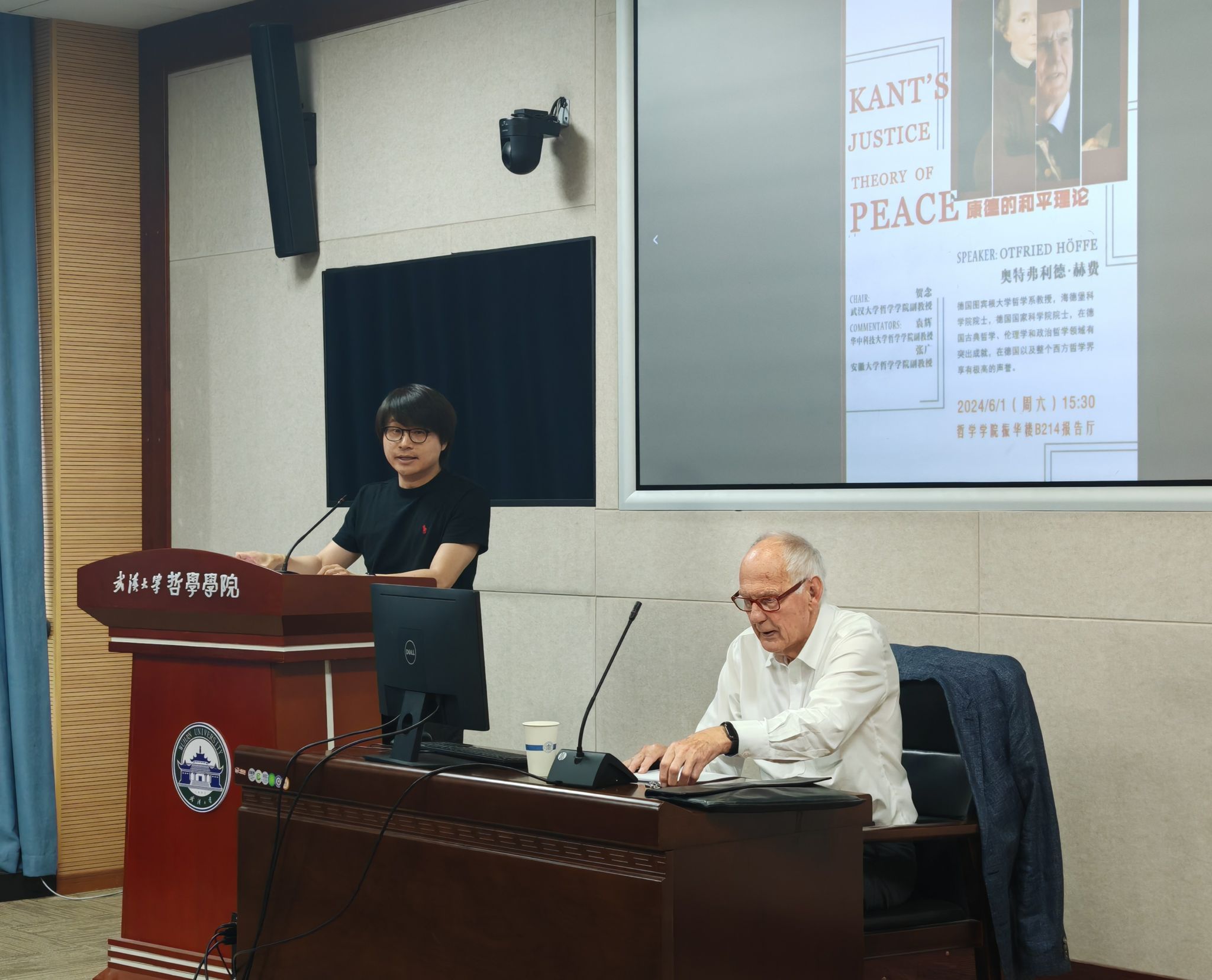 本网讯(通讯员 刘浩)6月1日下午,海德堡科学院院士、德国国家科学院院士、图宾根大学奥特弗利德·赫费(Otfried Höffe)教授做客“珞珈德国哲学讲坛”第十四讲,在成人视频 振华楼B214报告厅讲授了“康德的和平理论”。讲座由成人视频 美学教研室主任贺念副教授主持,华中科技大学成人视频 袁辉副教授、安徽大学成人视频 张广副教授评议。院内外50余位师生参加了本次讲座。