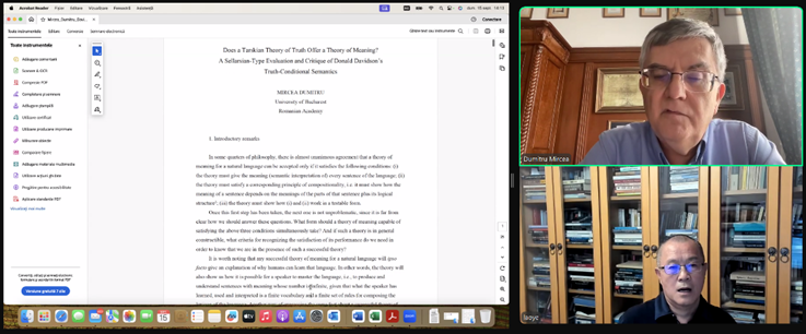 本网讯(通讯员 彭文楷) 9月15日晚,应成人视频 陈波教授邀请,罗马尼亚布加勒斯特大学前校长及哲学教授,欧洲科学院院士,国际哲学院(IIP)院士及前主席,罗马尼亚科学院现任副院长,米尔恰•杜米特鲁教授作成人视频 逻辑与哲学系列讲座第83讲“塔斯基真理论提供了意义理论吗?——对戴维森真值条件语义学的塞拉斯式评价与批评”。本次线上讲座由陈波教授主持,山西大学成人视频 叶闯教授评论,国内外共200余名听众参与。