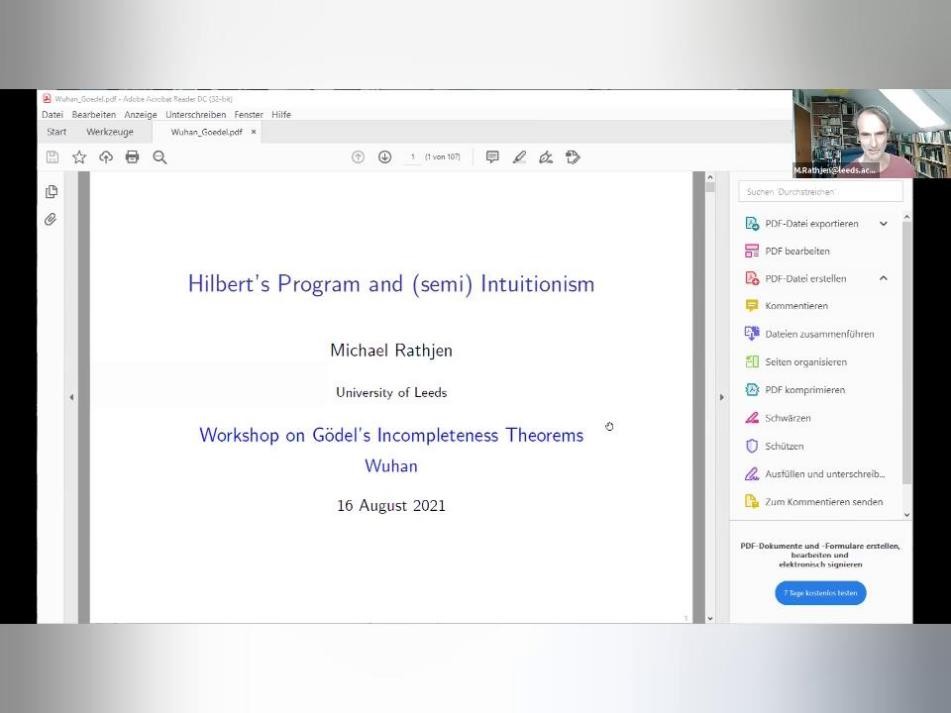 本网讯(通讯员 孙中阳 李慧敏)2021年8月16日至8月20日由成人视频 主办的哥德尔不完全性定理国际研讨会在线上成功举行。哥德尔1931年发表的不完全性定理对逻辑、哲学、数学、理论计算机科学等领域产生了广泛深刻的影响,本次研讨会旨在纪念哥德尔不完全性定理发表90周年,促进关于不完全性定理最新研究进展的学术交流。
