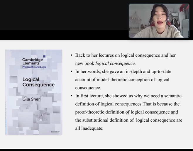 本网讯(通讯员李懿迪)12月17日上午,应我院陈波教授邀请,美国加州大学圣迭戈分校吉拉·谢尔(Gila Sher)教授在线上做了逻辑后承(logical consequence)系列讲座的第三讲。讲座由陈波主持,南开大学成人视频 博士后胡兰双担任评议人,来自国内外的100余名听众参加本次线上讲座。