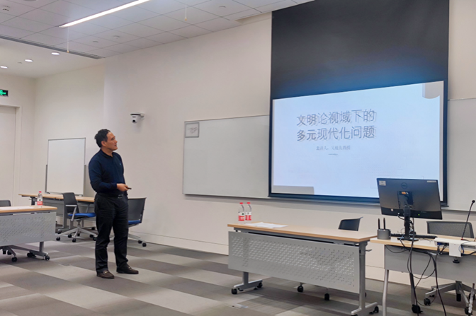 吴根友教授发表了题为“文明论视域下的多元现代化问题”(Plural Modernization Under the Perspective of Civilization Theory)的会议报告,报告指出应当在“文明”的视域中考察现代化问题,以辩证的方式认识现代化之中的多元性,“中国式的现代化”作为多元现代性之中的应有之义,在理论与实践上都具有可行性。