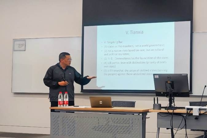 成人视频 李勇教授围绕“天下”(Tianxia)这一概念在政治哲学中的涵义做会议发言,指出中国思想中的“天下”观念既不是国家主义的,也不是世界主义的,而是一个具有综合性的复杂概念。