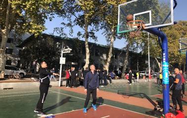 吴根友院长正在进行篮球投篮比赛