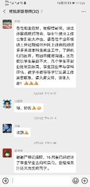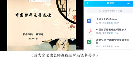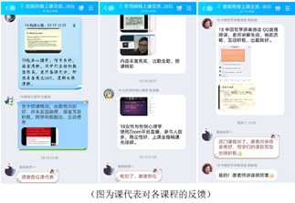 教学学工协同确保线上教学顺利开展。学院教学秘书做了大量开课前的筹备工作,一对一协助每一位教师顺利网上开课。开学前联合辅导员组织各班推选出各课程课代表,协助老师做好答疑和考勤工作,课代表负责成立课程群,便于同学们上课和课程互动。之后面向所有课代表成立哲院网络上课交流群,专门对接学生,及时接收和了解学生对课堂的反馈,对于学生提出的问题及时作出回应和解决,确保了学院线上教学和学生学习效果。
